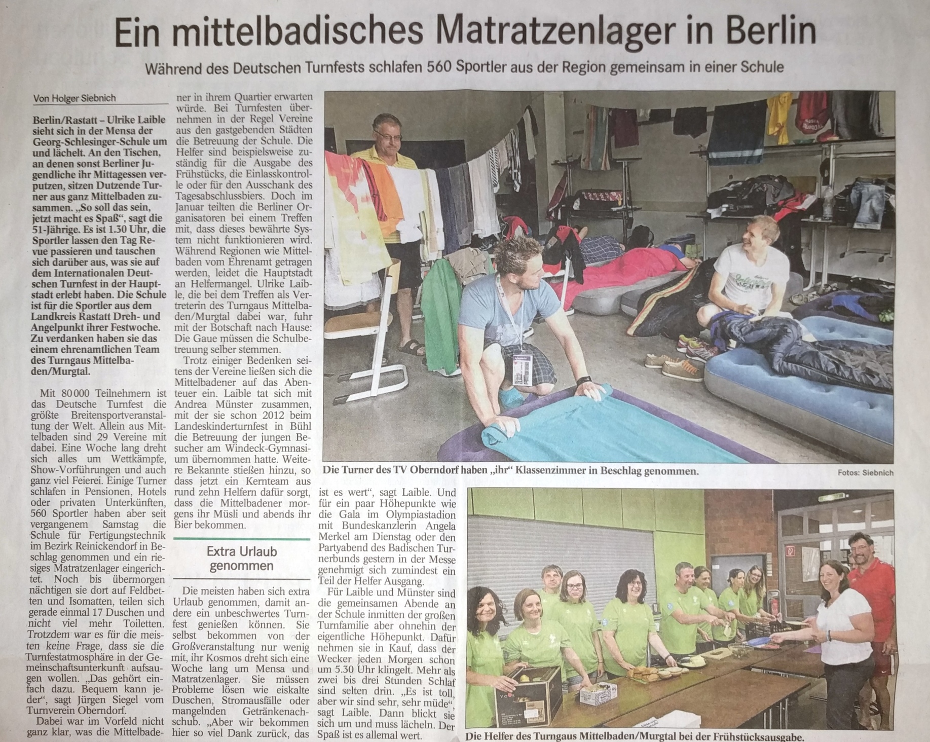 Gemeinsam mit den 28 weiteren gemeldeten Vereinen des Turngaus Mittelbaden/Murgtal waren die Oberndorfer in einer Berufschule im Bezirk Reinickendorf untergebracht. Insgesamt 560 Sportler verwandelten die Klassenzimmer dort eine Woche lang in ein einziges großes Matratzenlager. Und schon die Anreise war für sie ein kollektiver Spaß gewesen. Der Badische Turnerbund hatte einen Sonderzug organisiert, der die Teilnehmer zwischen Basel und Heidelberg einsammelte und über Nacht in die Hauptstadt brachte. Da dessen Abteile wenig zum Schlafen einluden, war der Partywaggon umso besser ausgelastet.